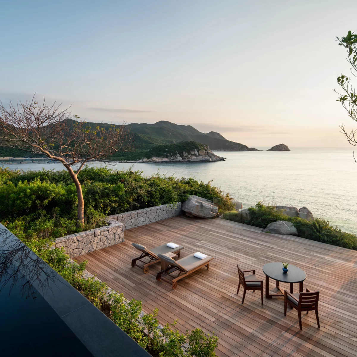 由著名建築師Jean Michael Gathy 操刀,Gathy素來擅長結合當地文化及現代簡潔俐落的風格。從越南設計中汲取充滿藝術感覺的簡潔典雅,搭配天然的素材,與飯店本身戲劇性的位置及得天獨厚地勢的自然景緻完美契合,每間海景別墅均可坐擁全景視野。