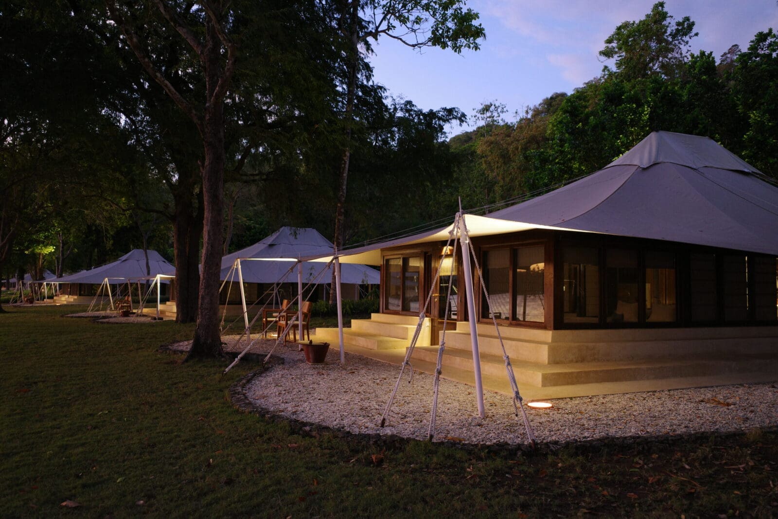 Amanwana 由知名建築設計師 Jean-Michel Gathy 操刀,將豪華帳篷與自然環境完美融合。度假村的17座帳篷別墅設計獨特,結合了寬敞的起居空間和熱帶叢林的原始美景,內部裝飾有印尼藝術品和原木家具。這種設計不僅顛覆了傳統帳篷的形象,還讓賓客在奢華與自然之間找到完美平衡,營造出舒適的度假氛圍。