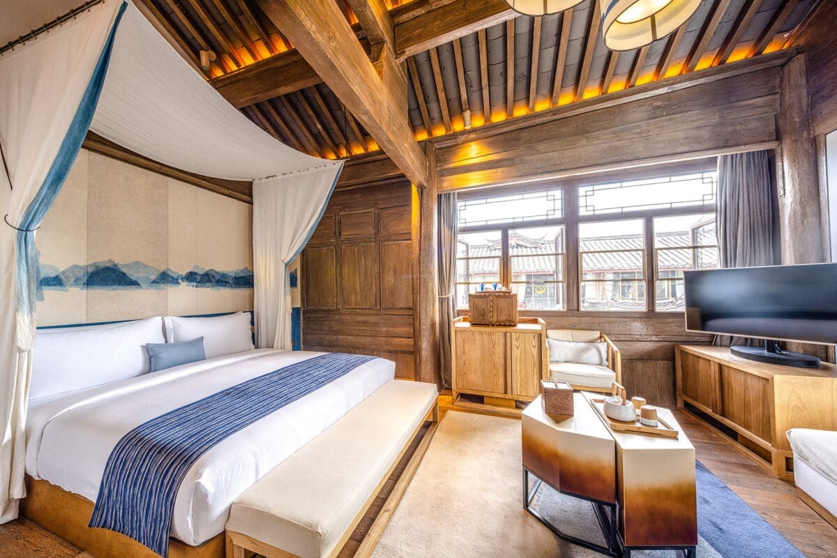 麗江麗世飯店坐落於800年歷史的麗江古城核心,位於⼤研古城之內,步⾏可達⽊府、四⽅街,飯店貼心安排勞斯萊斯高爾夫球車,接送賓客直達古鎮內的麗江麗世飯店,避開人潮與步行疲憊,展現尊貴禮遇。這裡是茶馬古道上的靜謐秘境,結合納西文化與現代設計美學,打造輕盈明亮的住宿氛圍。旅客可輕鬆探索世界文化遺產的古街風情,同時在麗世享受高品質的靜謐時光。