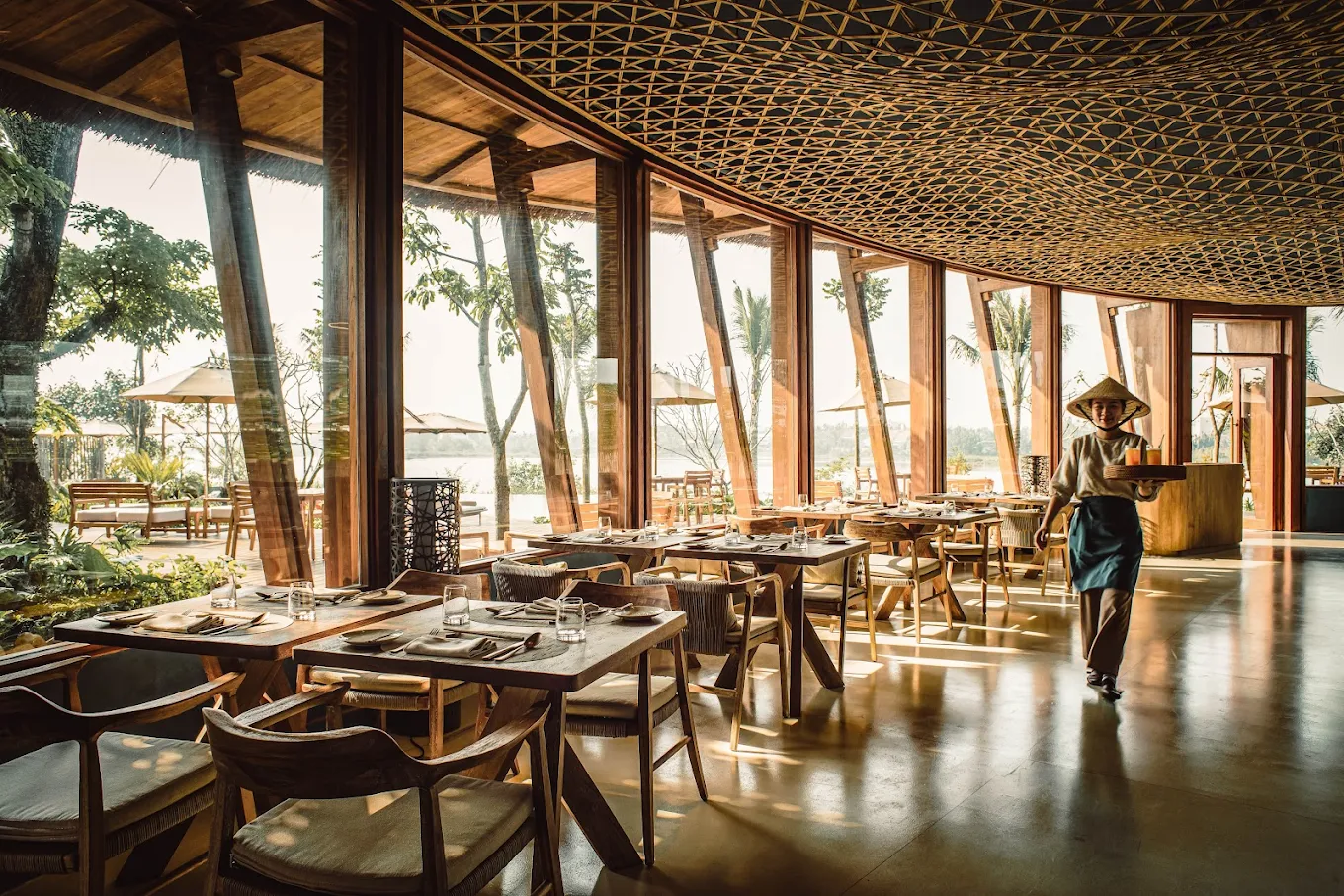 位於會安近郊河畔,Namia River Retreat 是一座結合自然與療癒的精品度假村。獨棟泳池別墅隱身椰林與溪流間,設計簡約溫潤,配有落地窗與開放式浴缸,讓自然光與綠意融入生活。園區內亦安排在地文化活動,適合想遠離塵囂、靜心享受自然的旅人。