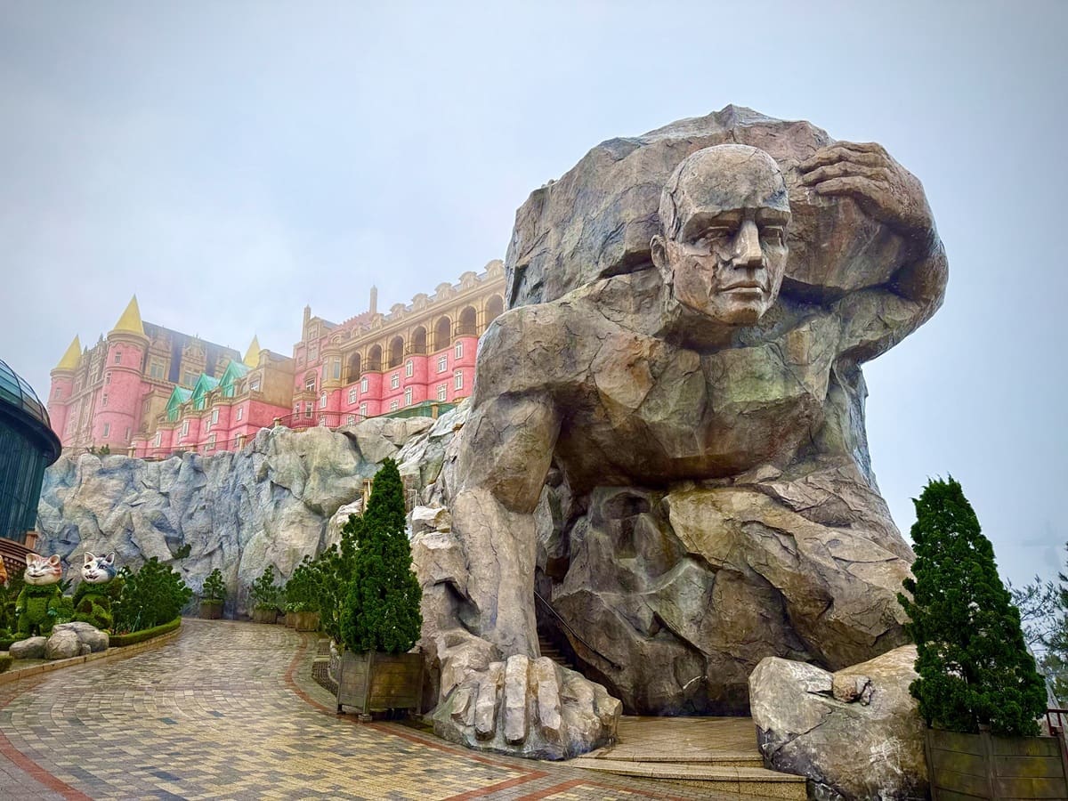 位在海拔1414m高之處,以巨大石手供拖著閃閃發光的金橋為其特色,與周圍的壯麗景色融合,讓人嘆為觀止