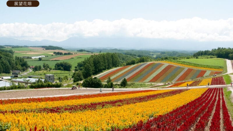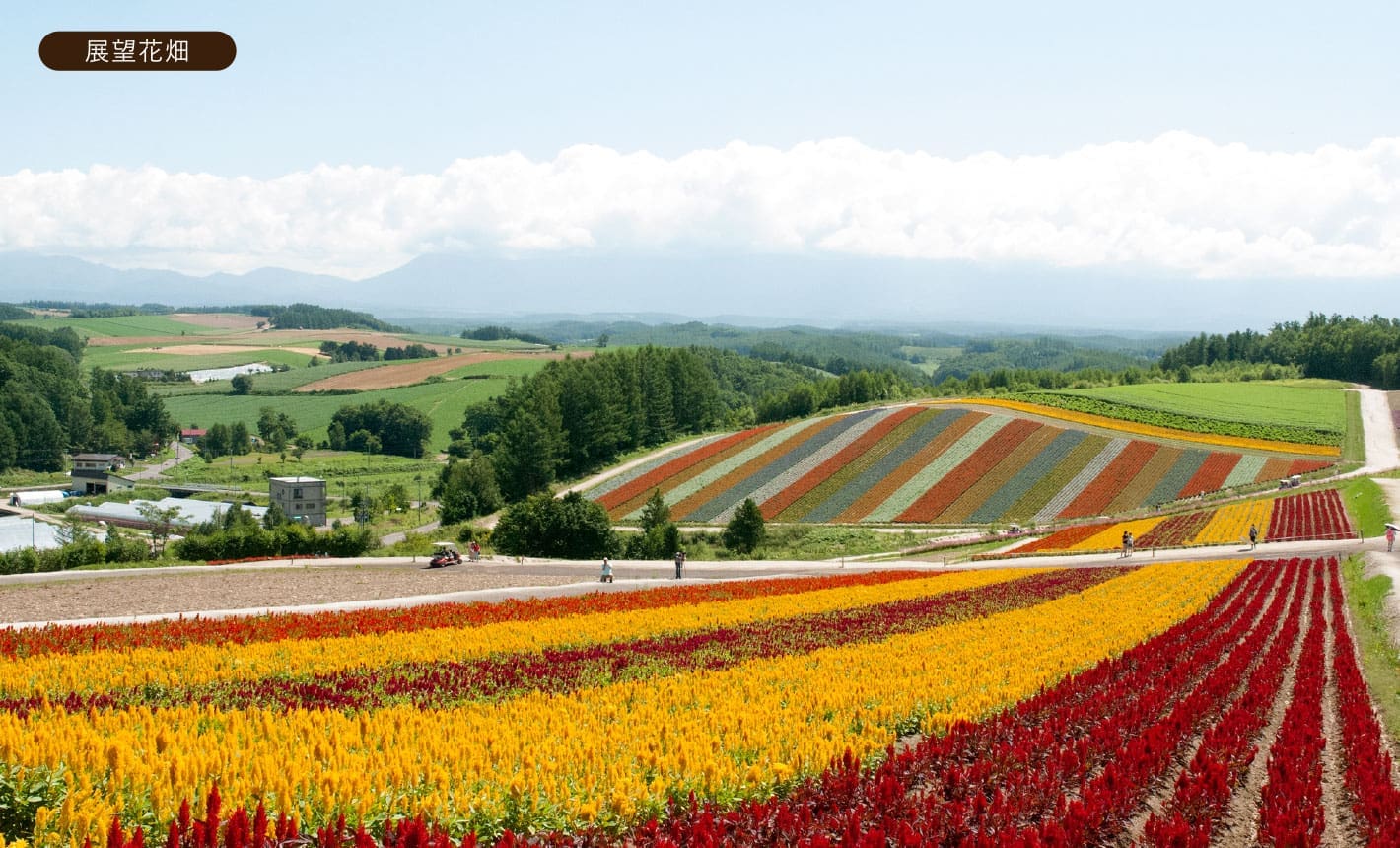 四季彩之丘位於美瑛,以大片梯田式花海聞名。春夏秋三季花卉繽紛盛開,如油畫般壯觀。園區可搭乘觀光車或騎乘ATV悠遊花田,也有可愛羊駝牧場,結合自然風景與可愛動物,深受親子與攝影愛好者喜愛。