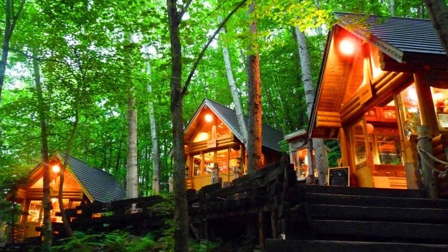 森林精靈露台隱藏在富良野森林中,由一間間木屋小店組成,宛如童話世界。店家販售手作藝品與當地特色商品,夜晚燈光點亮後更顯夢幻,是情侶拍照或家庭悠遊的熱門景點,充滿奇幻氛圍。