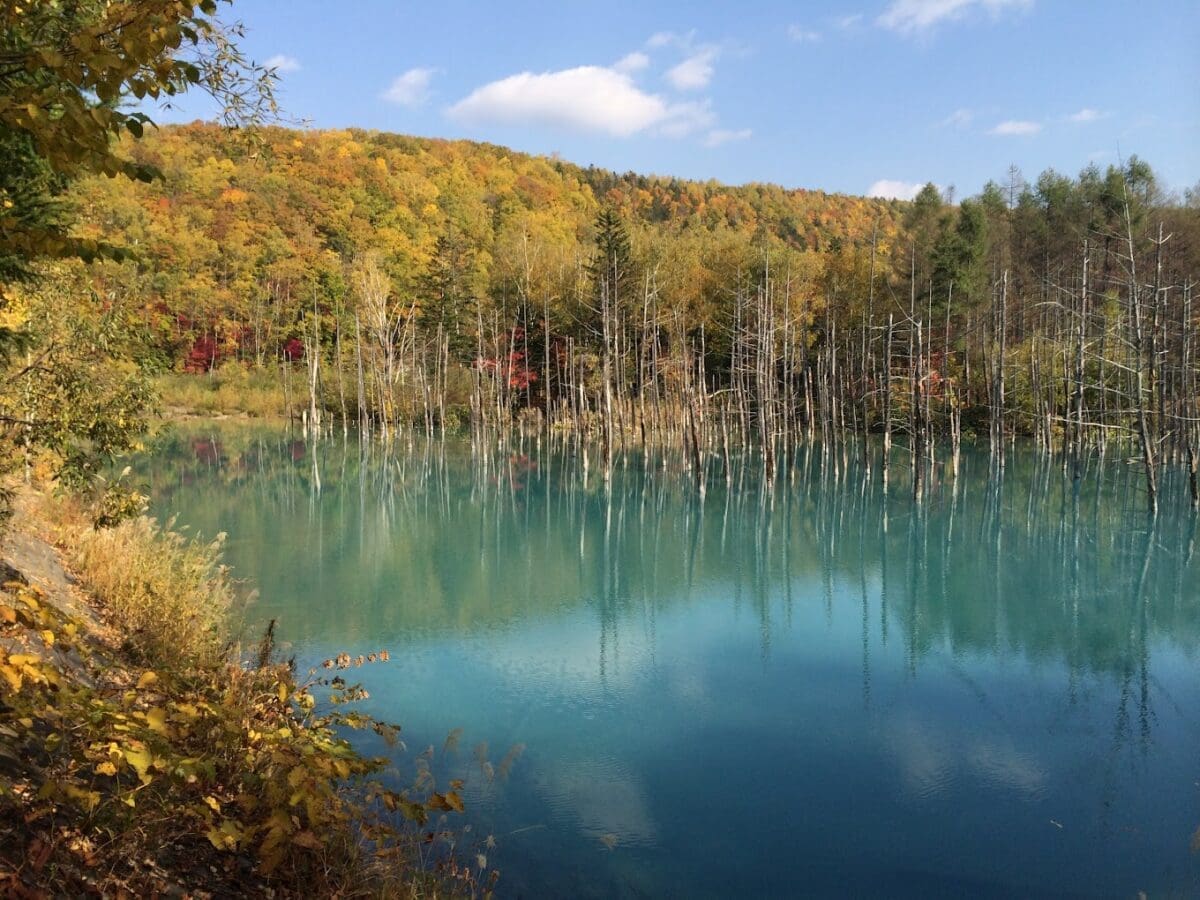 青池是因火山礦物質而呈現夢幻藍色的神秘湖泊,隨著陽光與角度變化色澤,令人驚艷。水中枯木林立,如畫般靜謐。此地曾被蘋果公司選為桌布畫面,成為國際知名景點,是攝影迷必訪之地。