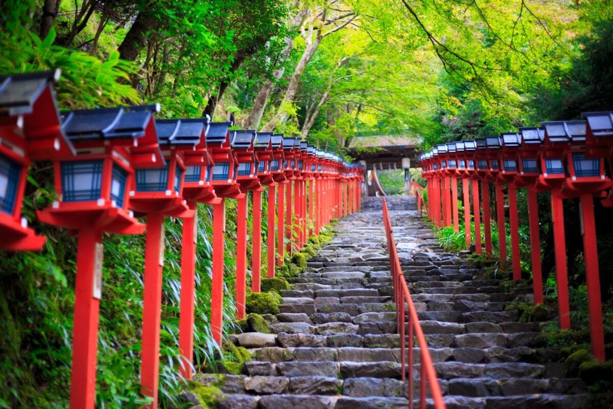 隱身於京都山林中的貴船神社,是祭祀水神的靈地,四季皆有不同風貌。沿著石階兩側的紅燈籠與參道,是拍攝日式神社氛圍的絕佳場景。夏天還能享受川床料理,是靜謐又充滿能量的景點。