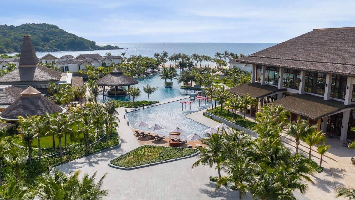 坐落於富國島南端,佔地約60公頃,擁有延綿3.5公里長的白色沙灘。酒店最引人注目的莫過於全島最大的無邊際泳池,滿足大人和孩童夏日戲水的需求。 距離富國國際機場僅30分鐘車程,而距離異國情調的落日小鎮和跨海纜車也僅需15分鐘車程即可抵達。