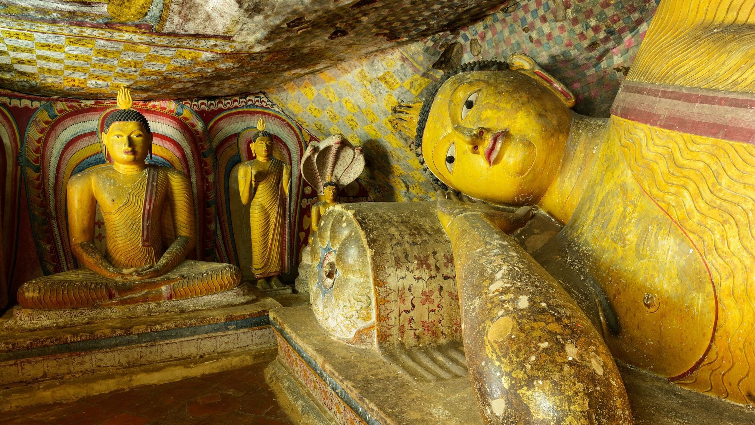 列為聯合國世界文化遺產,丹不拉岩穴石廟群最早的文獻紀錄可追溯至公元前一世紀,共有五大佛殿,也是斯里蘭卡保存最完整的洞穴廟宇,也是此地的著名地標建築,外觀簡樸,裡面卻有著清晰可見的石刻壁畫,傳達佛教教義,極具文化藝術價值,吸引著不少佛教徒遠道而來。