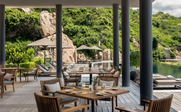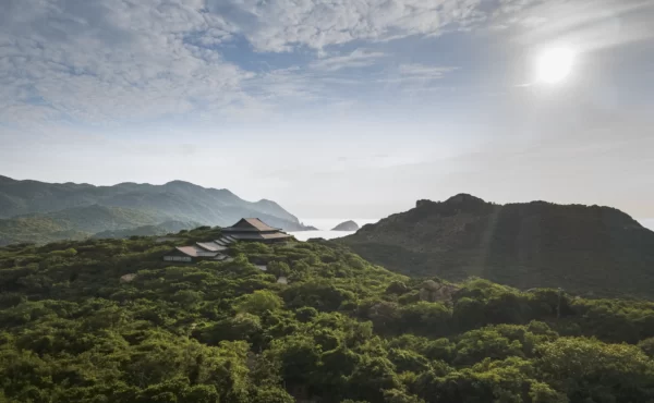 Amanoi位於於越南主山國家公園與海洋保護區之間,坐擁越南南部海岸的秀美自然風光,飯店矗立於海岸山脊之上,被延綿起伏,綠植覆蓋的山丘環繞,舉目遠眺,可見汪洋的東海與開闊的永熙灣。
